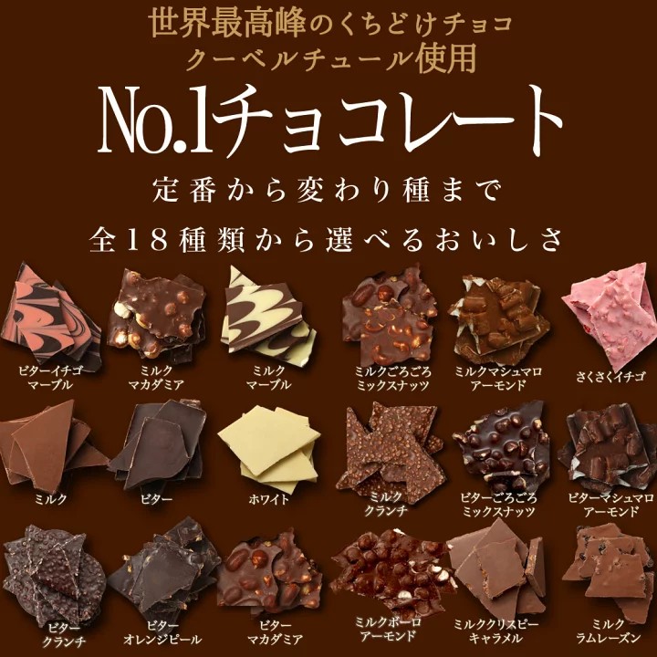 こちらは楽天で人気の「クーベルチュール割れチョコ」シリーズ。