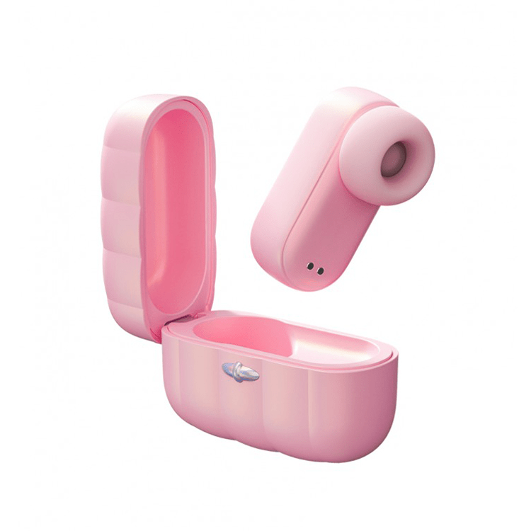 - デザイン:ピンクパールの貝殻ケースに収納。フォルムはイヤホン風で、人目につきにくい。持ち運びにも違和感なし。